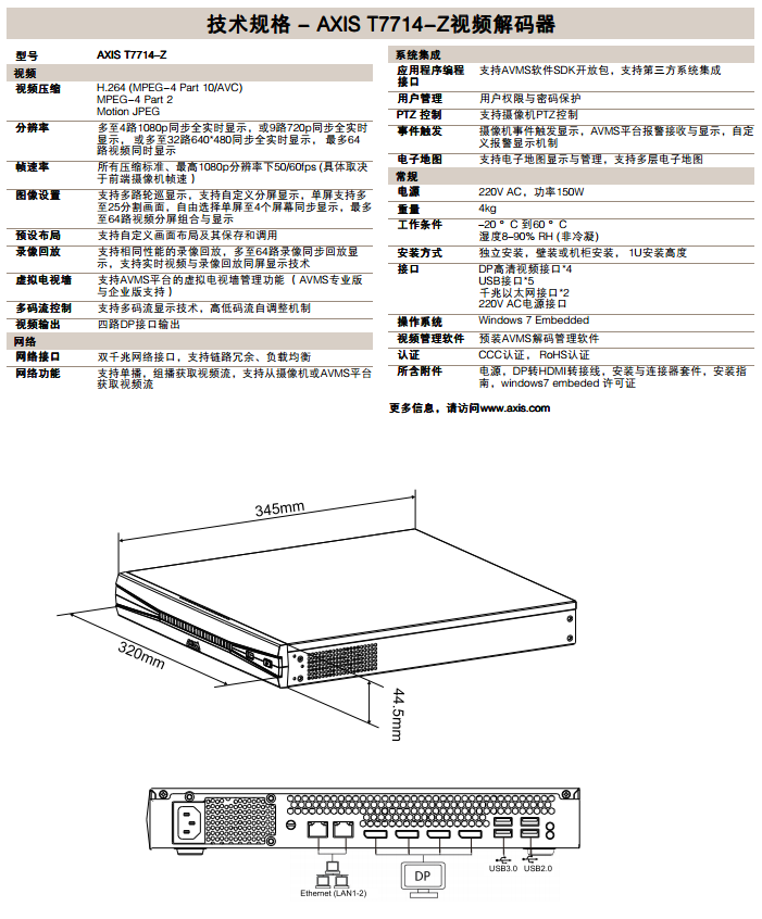 Product introduction:AXIS T7714-Z video decoder High-performance four-way high-definition video decoder solution